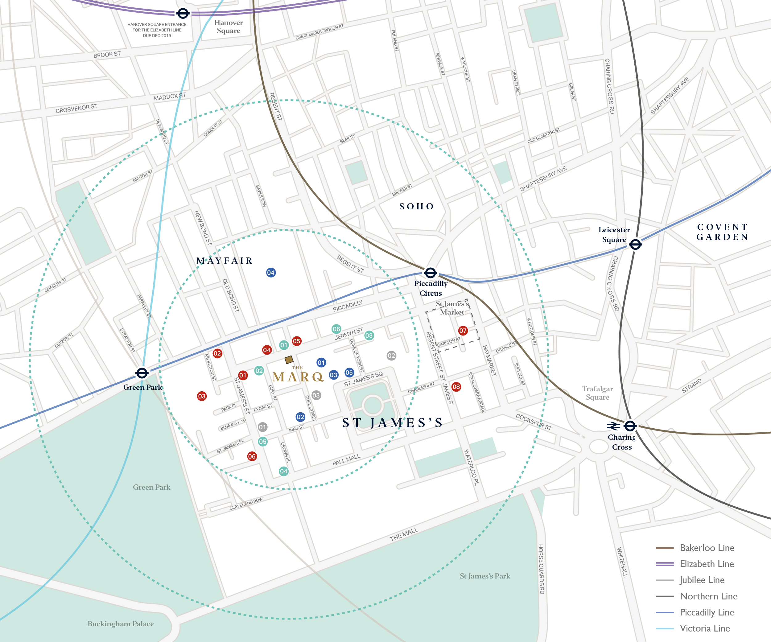 With flexible, column free floors and an abundance of natural light, all floors enjoy a corner aspect overlooking Jermyn Street, and floors 4 and 6 have a terrace. The customer facilities on the lower basement include cycle parking, private showers and changing rooms, all designed with wellness in mind.